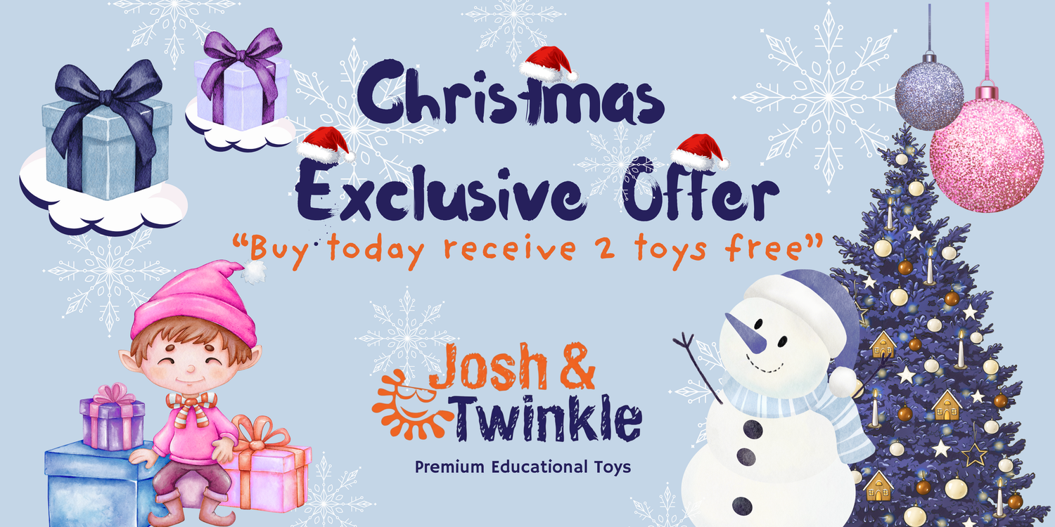 “What if learning felt like playtime? At Josh & Twinkle, every toy is designed for fun and learning — perfect for all ages! Our educational and stimulating toys can help improve motor skills, sharing skills, concentration, eye contact, and sensory touch and feel. Everything may develop or grow your child’s skills in a joyful way. Made from natural wooden materials — safe, durable, and eco-friendly. Josh & Twinkle — Learn as you play!”